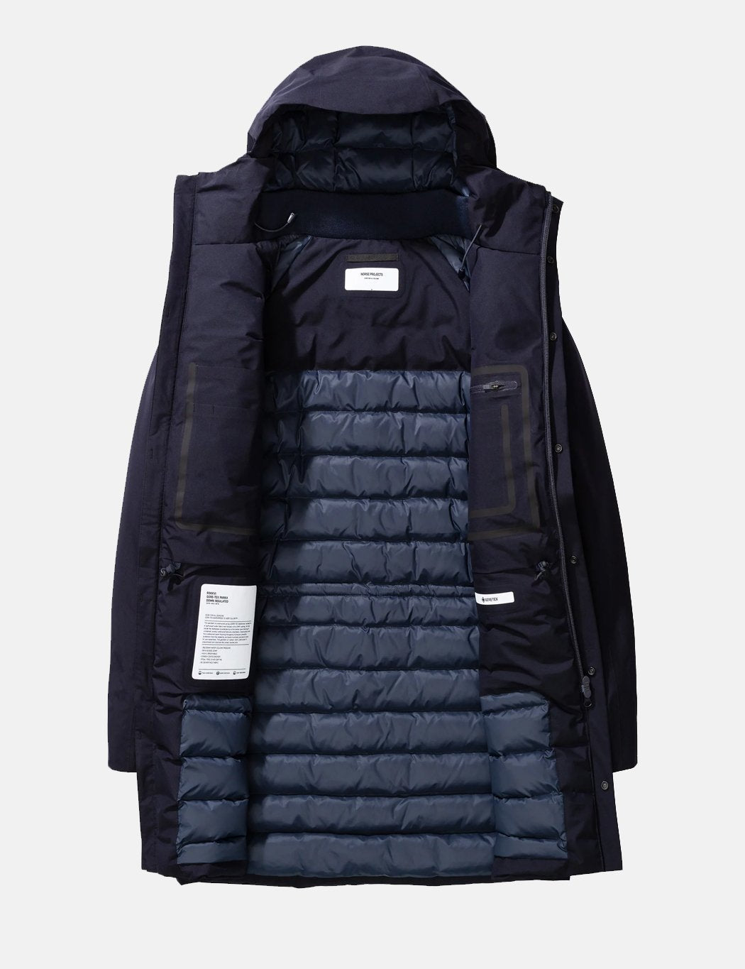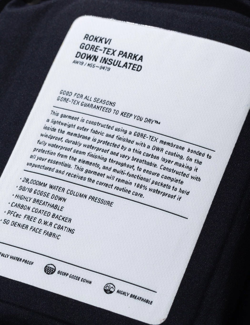 The new Rokkvi 5.0 parka constructed using a GORE-TEX membrane, bonded to a lightweight outer fabric and finished with a DWR coating. The lightweight, waterproof outer is constructed with fully waterproof seam finishing throughout, and a fixed lining insulated with 90/10 EU Standard Certified Goose Down. In order to ensure animal welfare and high quality Norse Projects demands that all its down suppliers comply with a RDS (Responsible Down Standard) certification.