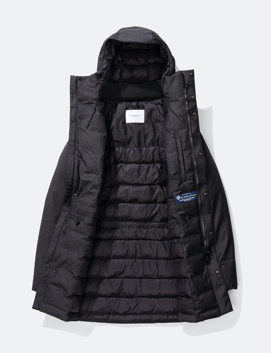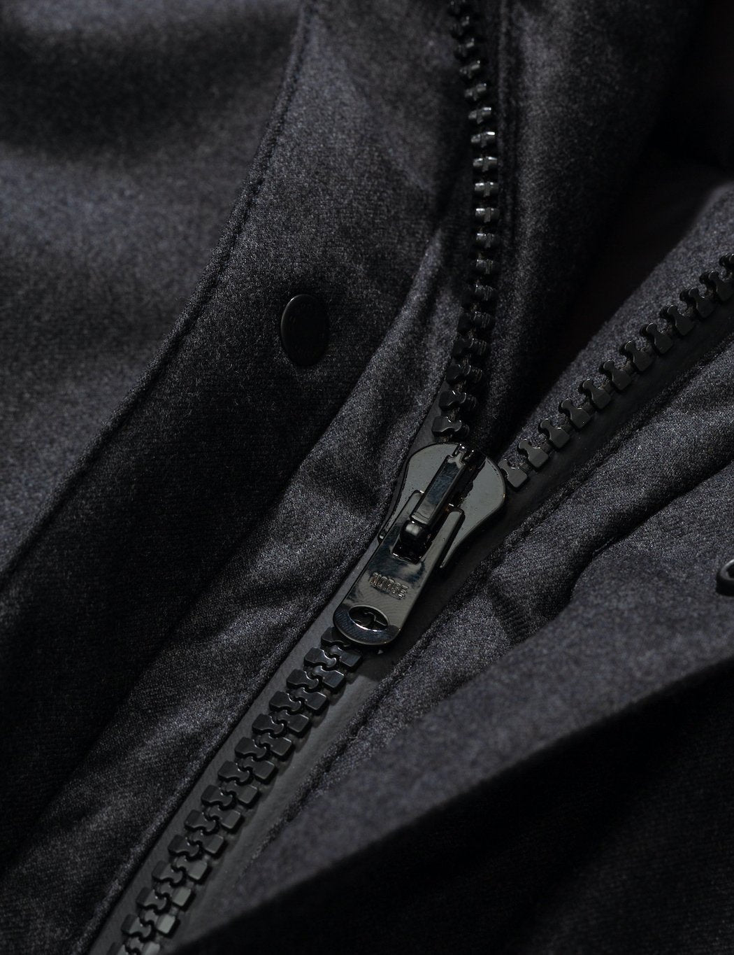 A carefully developed version of the extremely popular Rokkvi parka. This time engineered with Loro Piana Storm System waterproof wool. Details include an adjustable hood, rib storm cuffs, zippered storm welt pockets. This is woven in Italian factories from New Zealand wool, combined with a feather light microporous membrane and a water repellent coating.