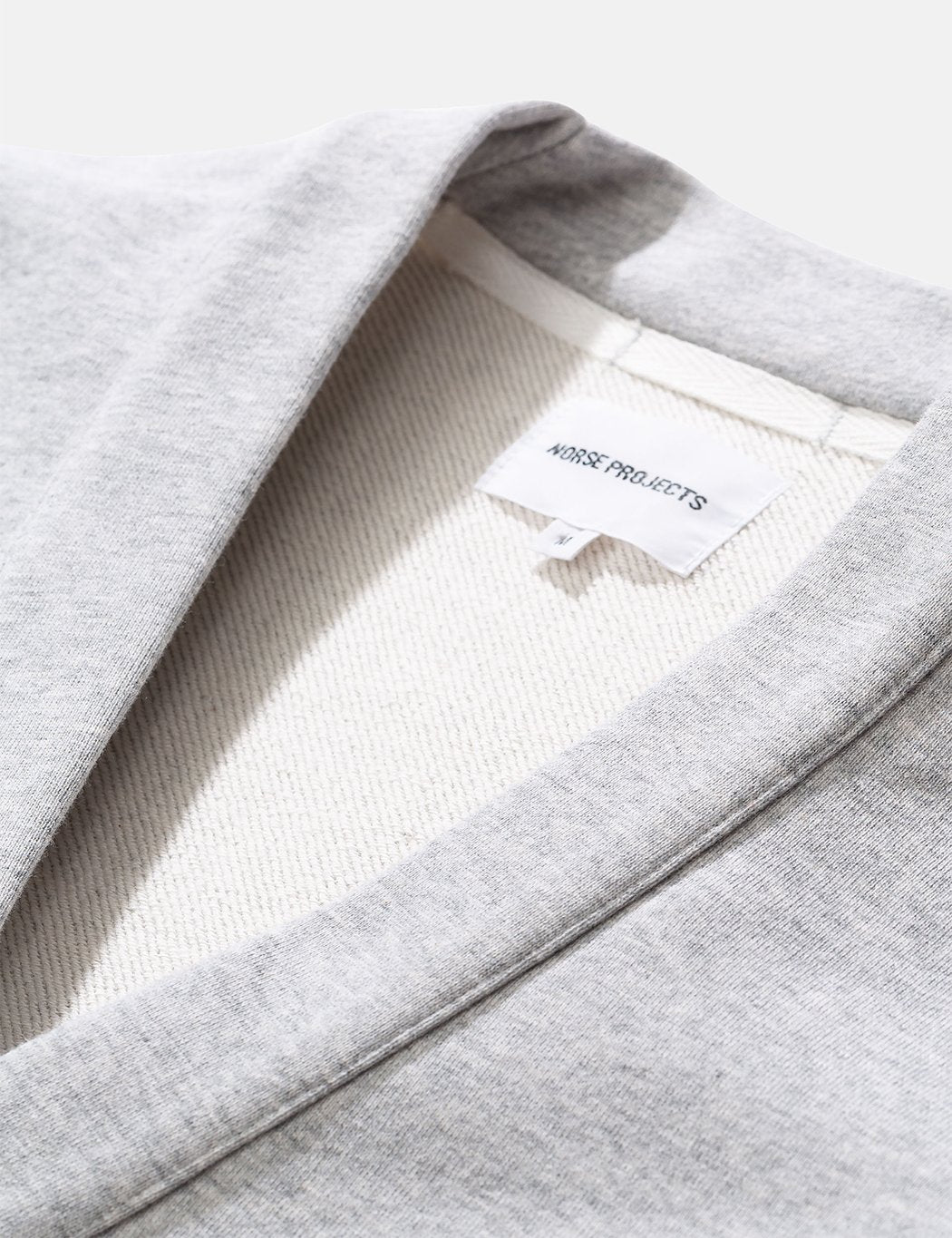 The Norse Projects Vidar Sweat Cardigan in light grey melange from the Norse Projects Spring/Summer 2020 sweatshirts collection.