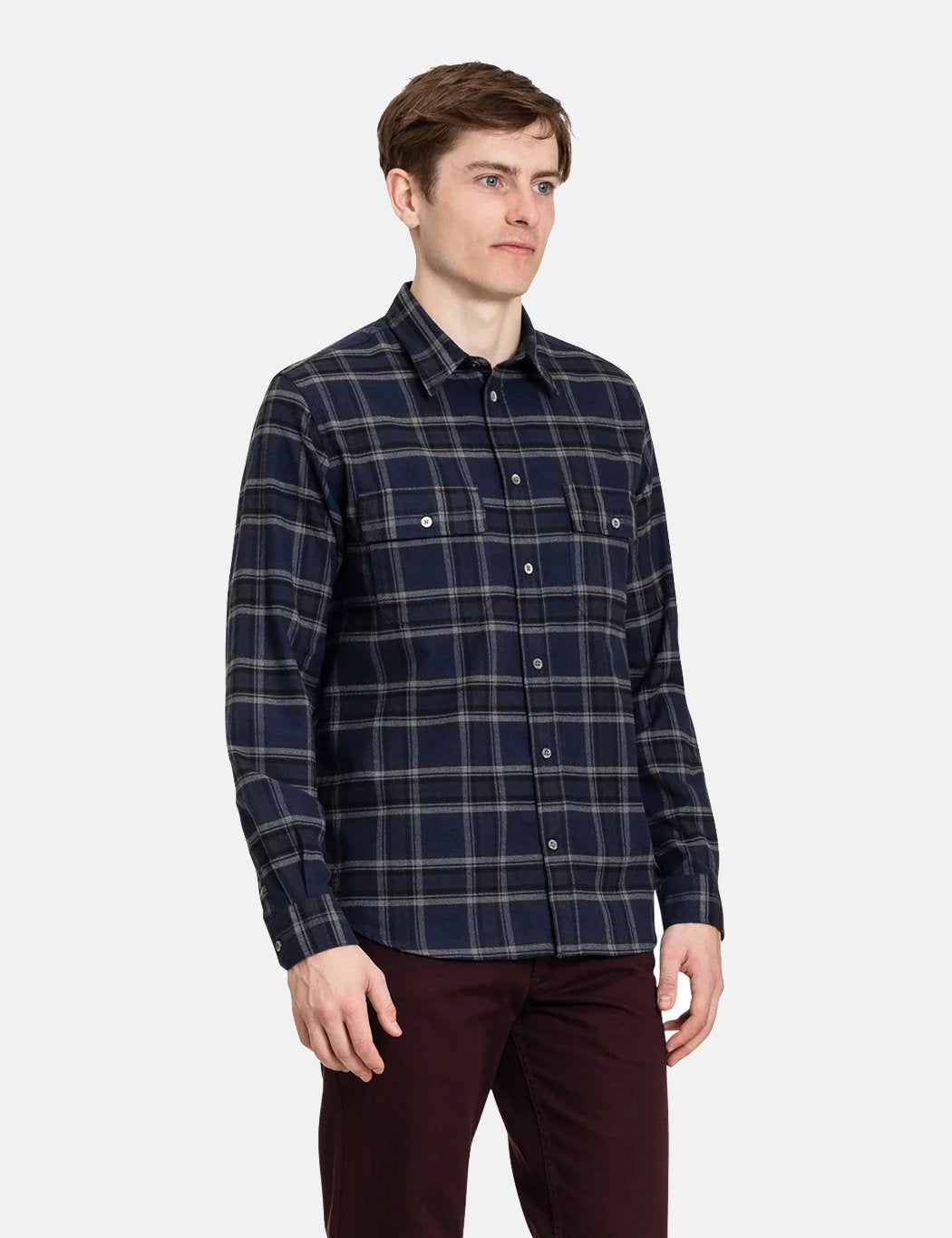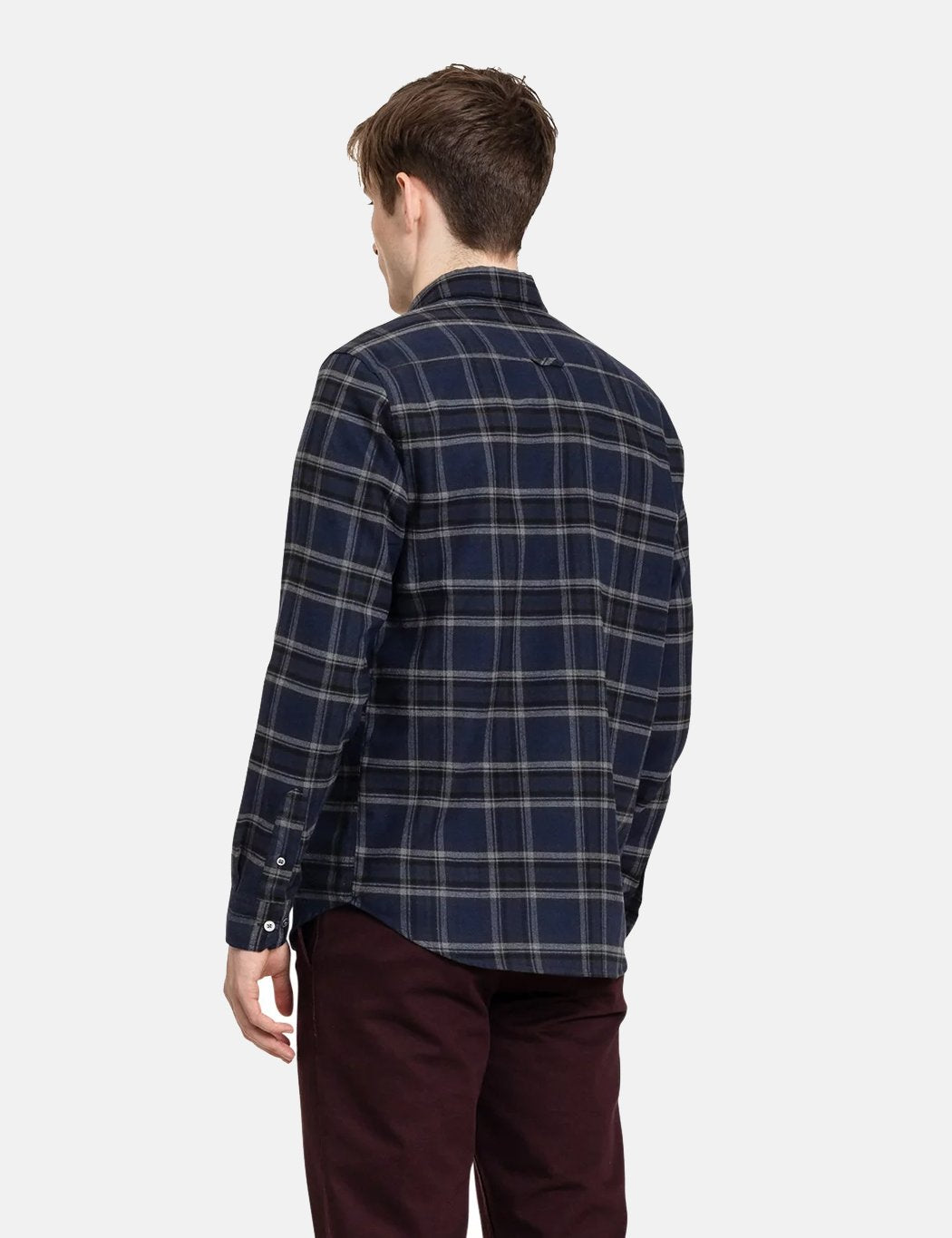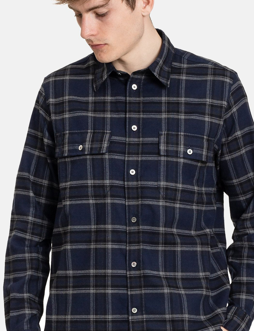 The Norse Projects Villads brushed flannel check shirt in dark navy blue from the Norse Projects Autumn/Winter 2019 collection.
