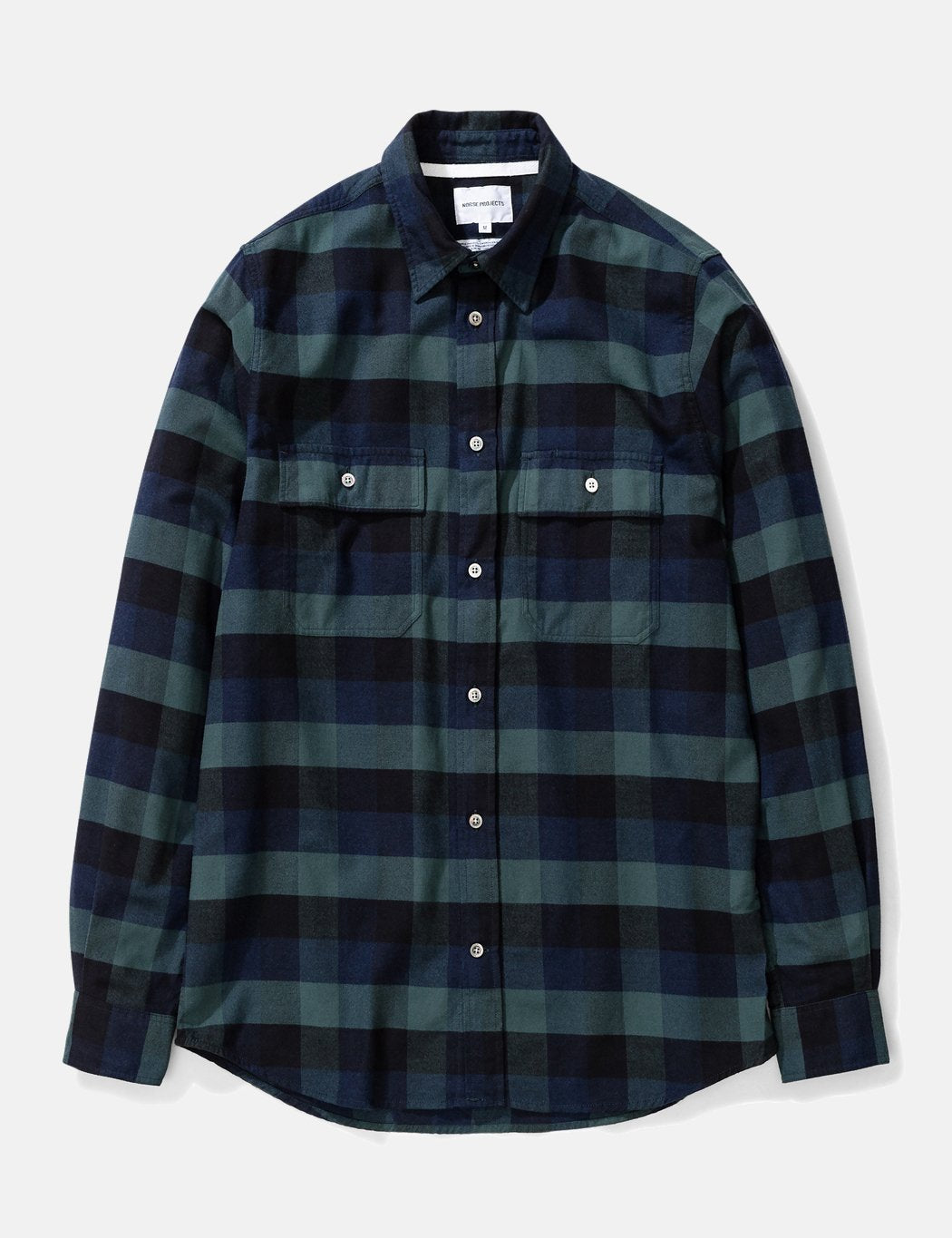 Norse Projects Villads Brushed Flannel Check Shirt - Dark Navy