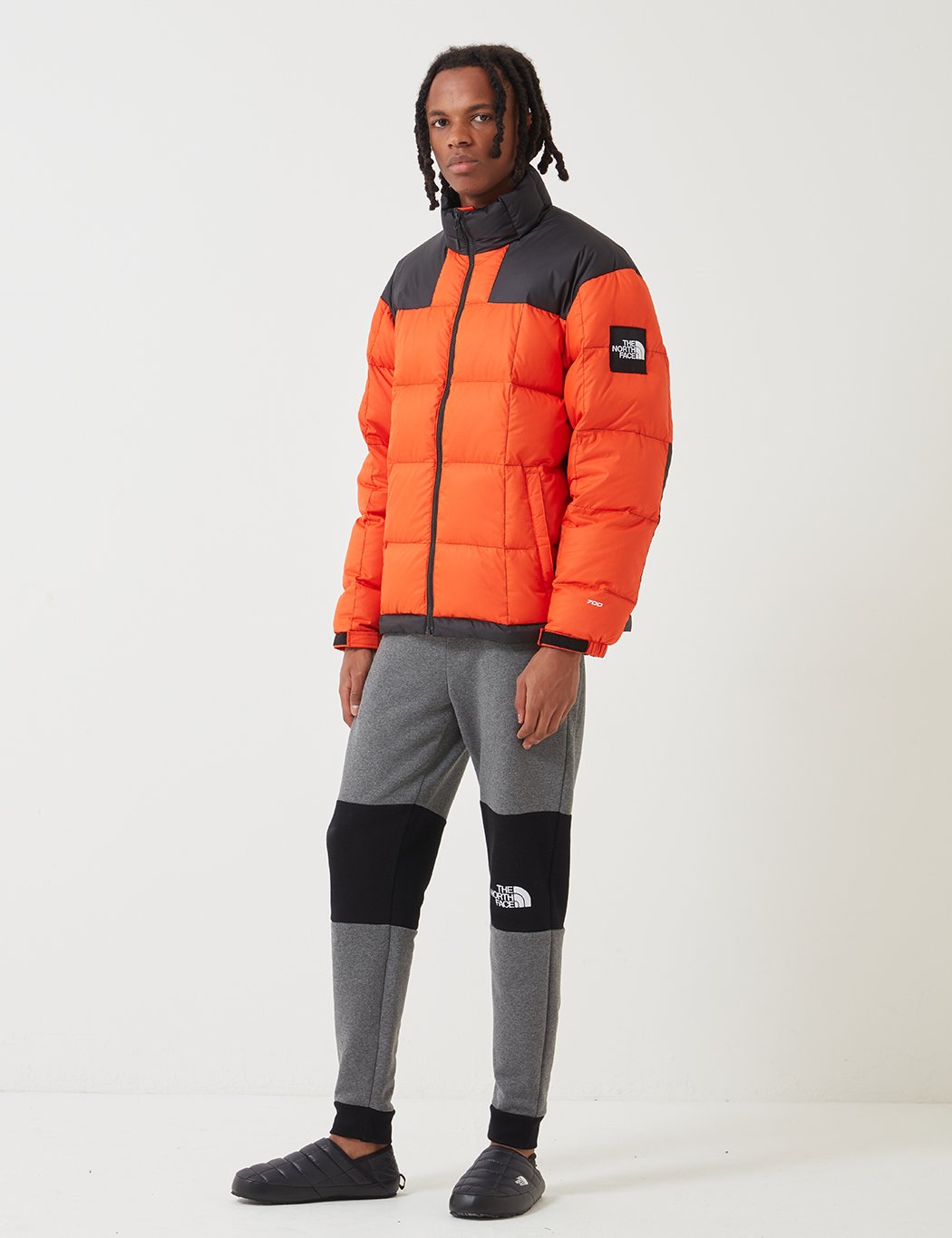 The Lhoste Jacket's Goose down insulation will keep you warm all winter, in this bold orange with contrast black shoulder and elbow panels. Featuring North Face black logo branding on sleeve.