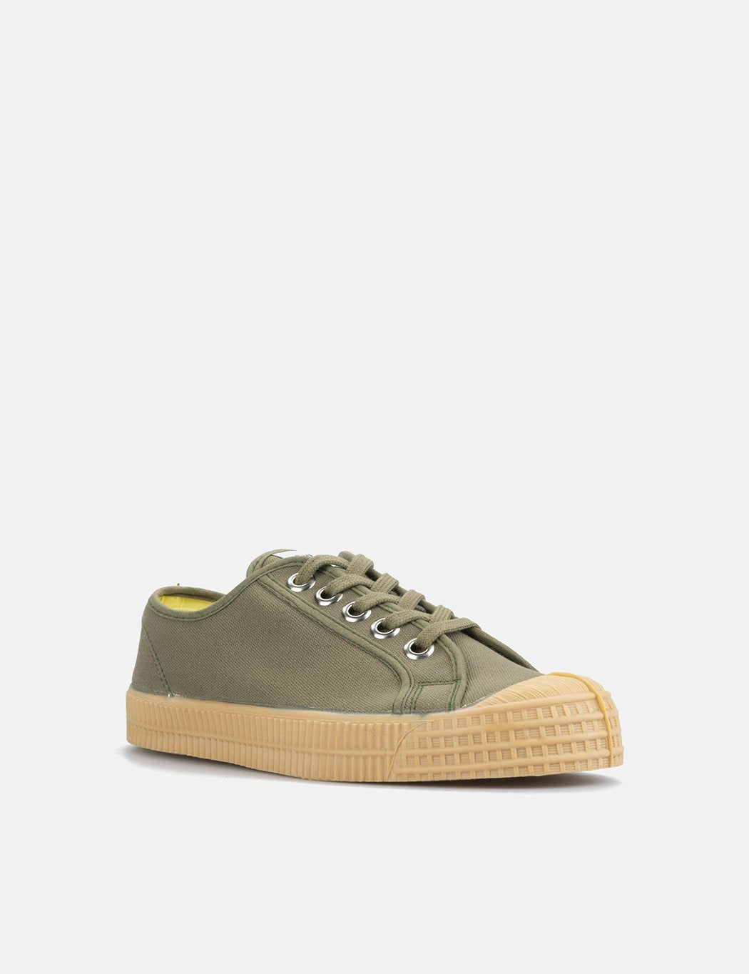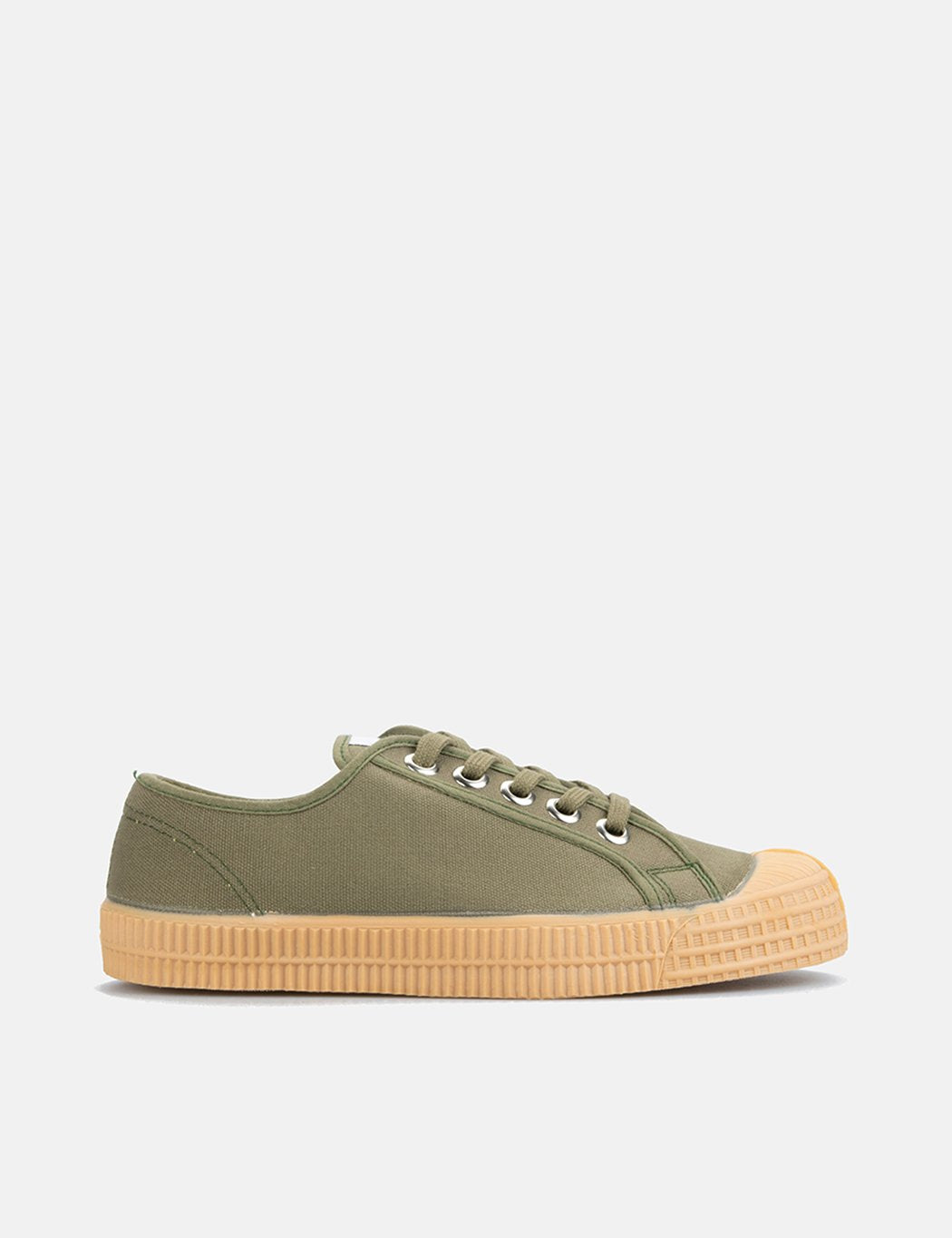 The classic Novesta Strar master plimsole trainer, this time in a khaki green and gum sole unit. Made in the same factory and with the same equipment as they were when first produced in 1939, the Slovakian brand has real heritage.