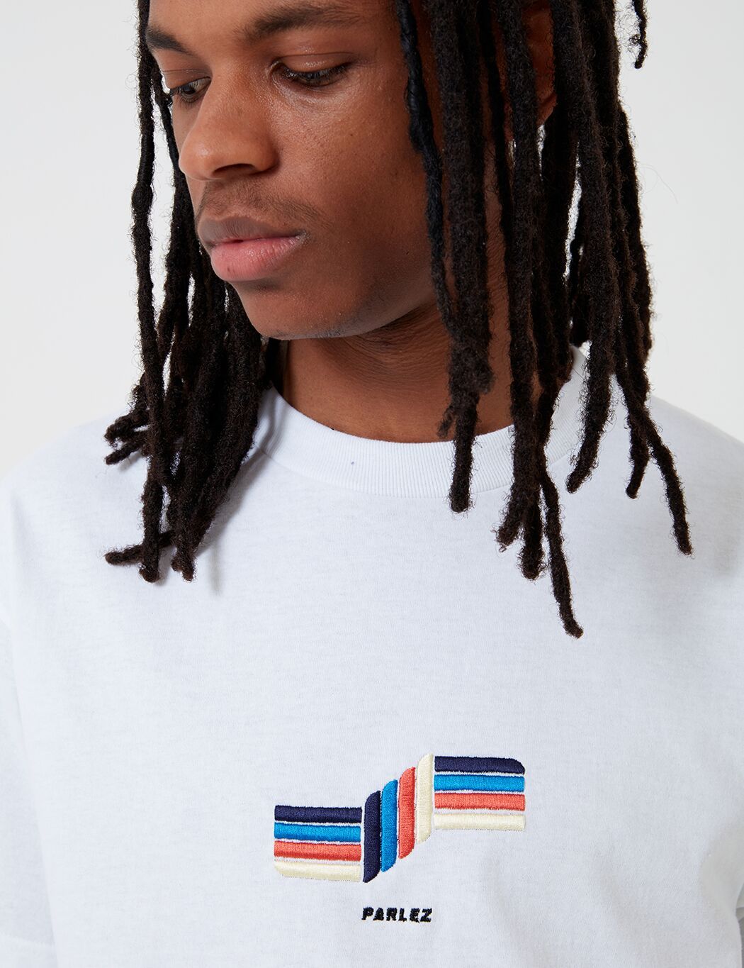 The Neese Parlez t-shirt features four colour embroidery graphic with Parlez script branding on centred chest. Heavy weight t-shirt in pre shrunk regular fit.