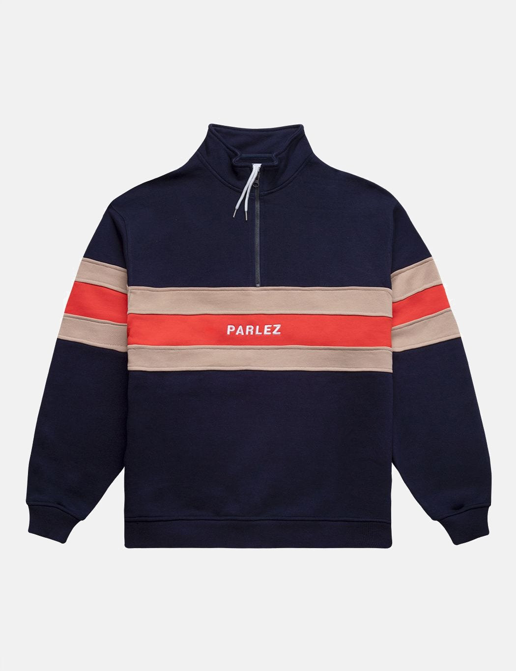 The Parlez Tether 1/4 Zip Sweatshirt in Navy Blue from the Parlez sweats Spring/Summer 2020 collection.