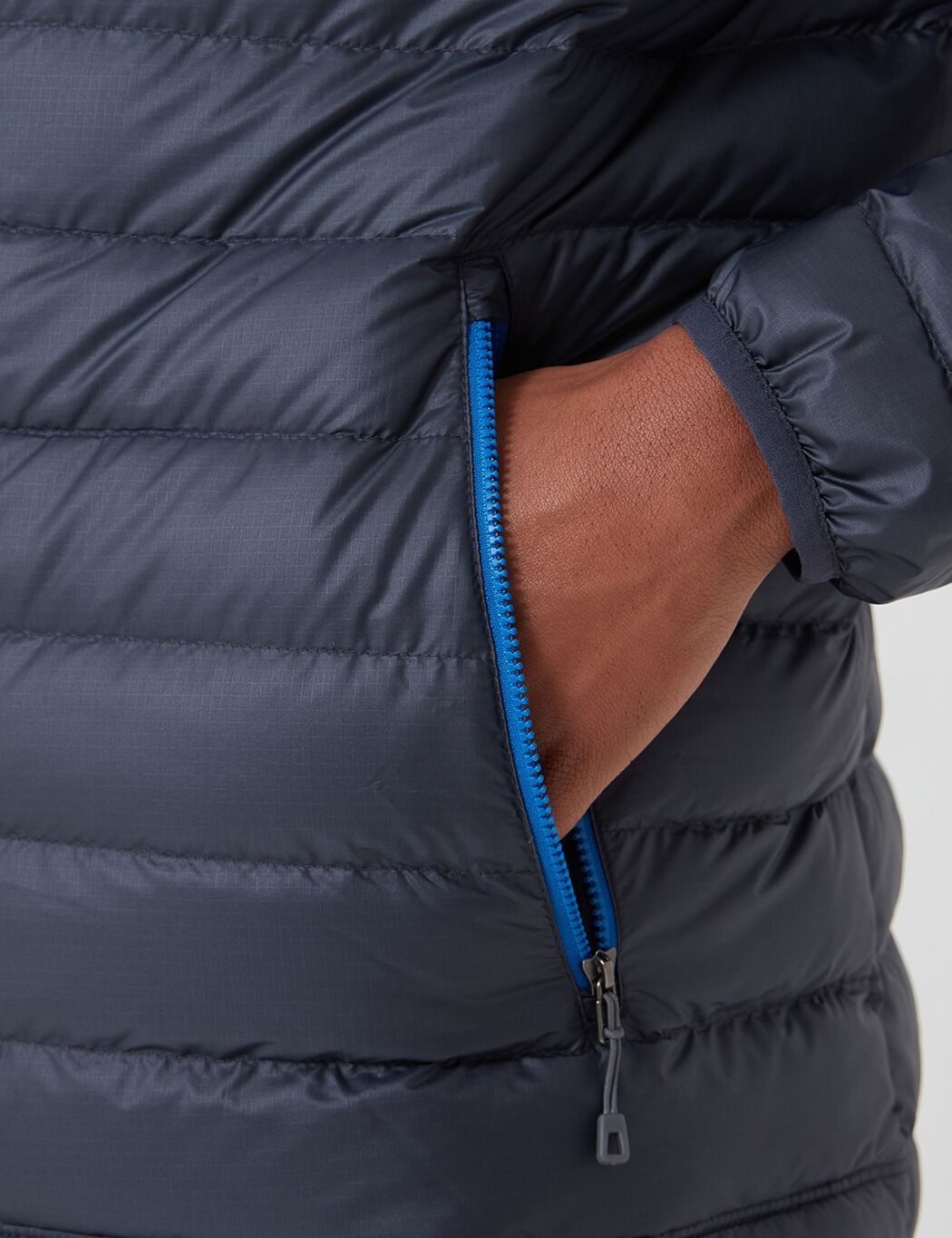 Classic Down Sweater is lightweight and windproof with a 100% recycled polyester ripstop shell and 800-fill-power Advanced Global Traceable Down (goose down certified by NSF International from parent farm to apparel factory to help ensure the birds that supply it are not force-fed or live-plucked).
